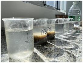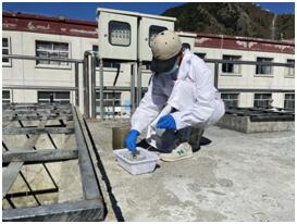 吉隆鎮(zhèn)污水處理廠化驗(yàn)員在進(jìn)水口、生化池、二沉池以及出水口四個點(diǎn)分別采集樣品。